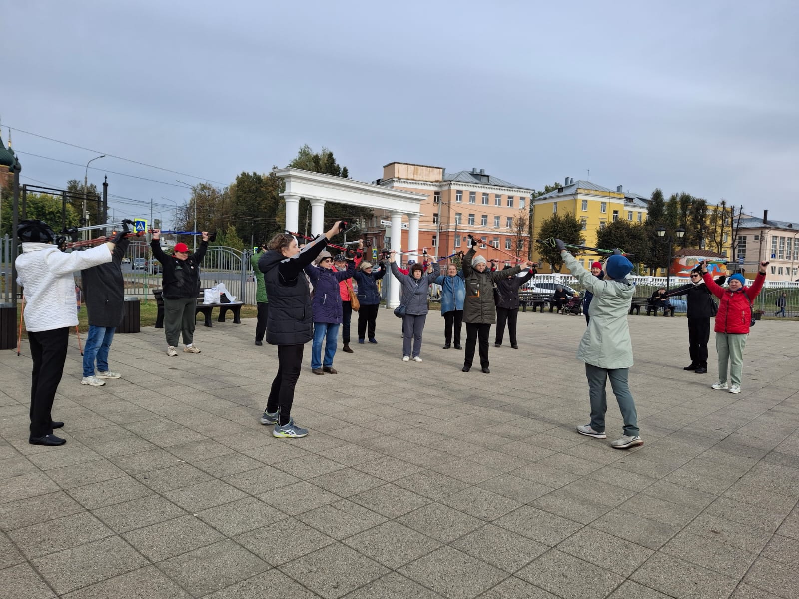 The organizers ensured that participants had equipment for the Nordic walking workshop, led by Elena Leonchuk, head of” Nordic-Yar”. She got the people involved in warm-up exercises and answered questions about the walking technique. The group walked around the park's perimeter a couple of times.