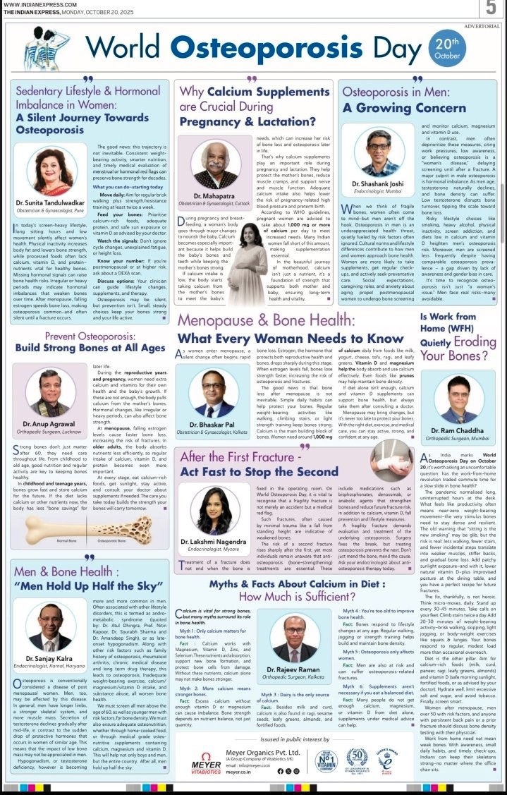 A full page article covering almost every aspect of bone health, with views of leading experts from across India.