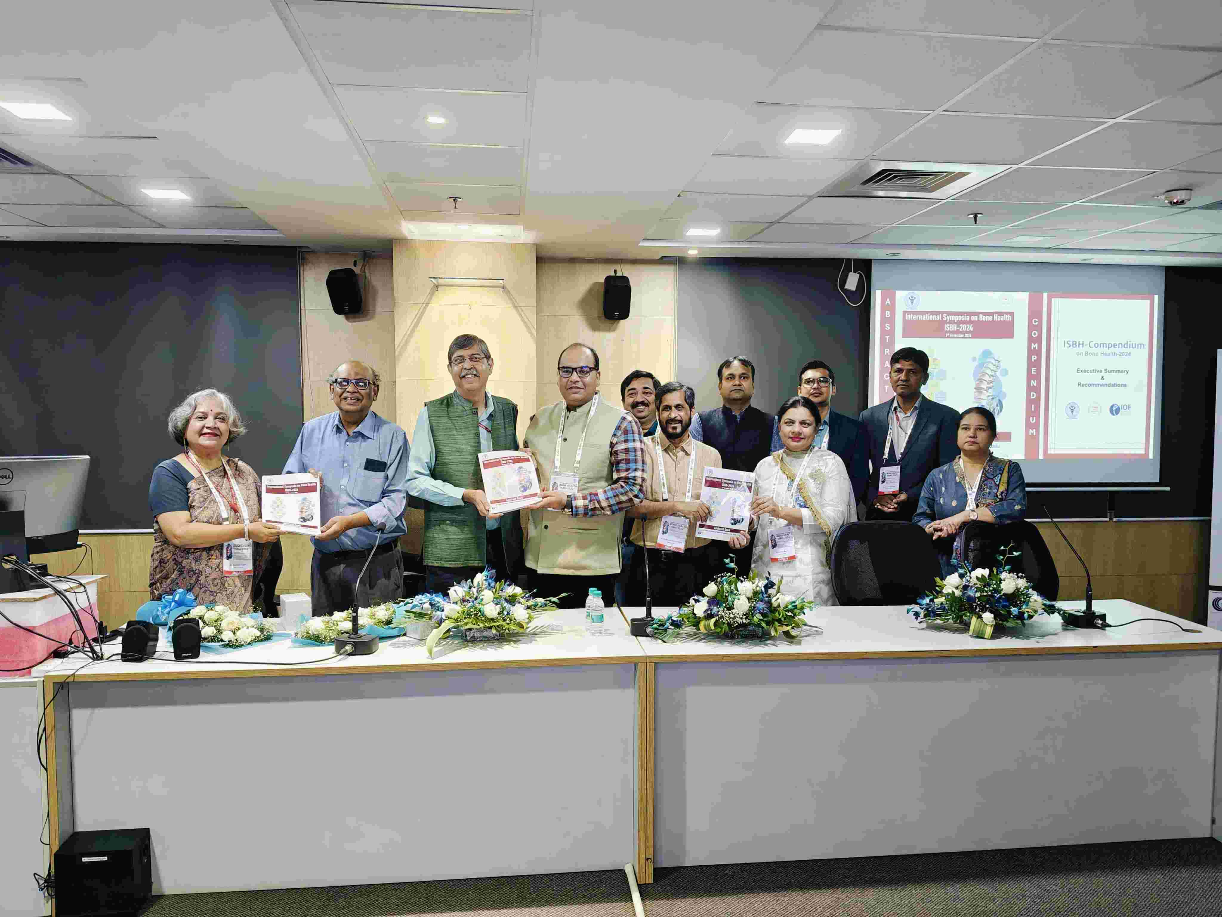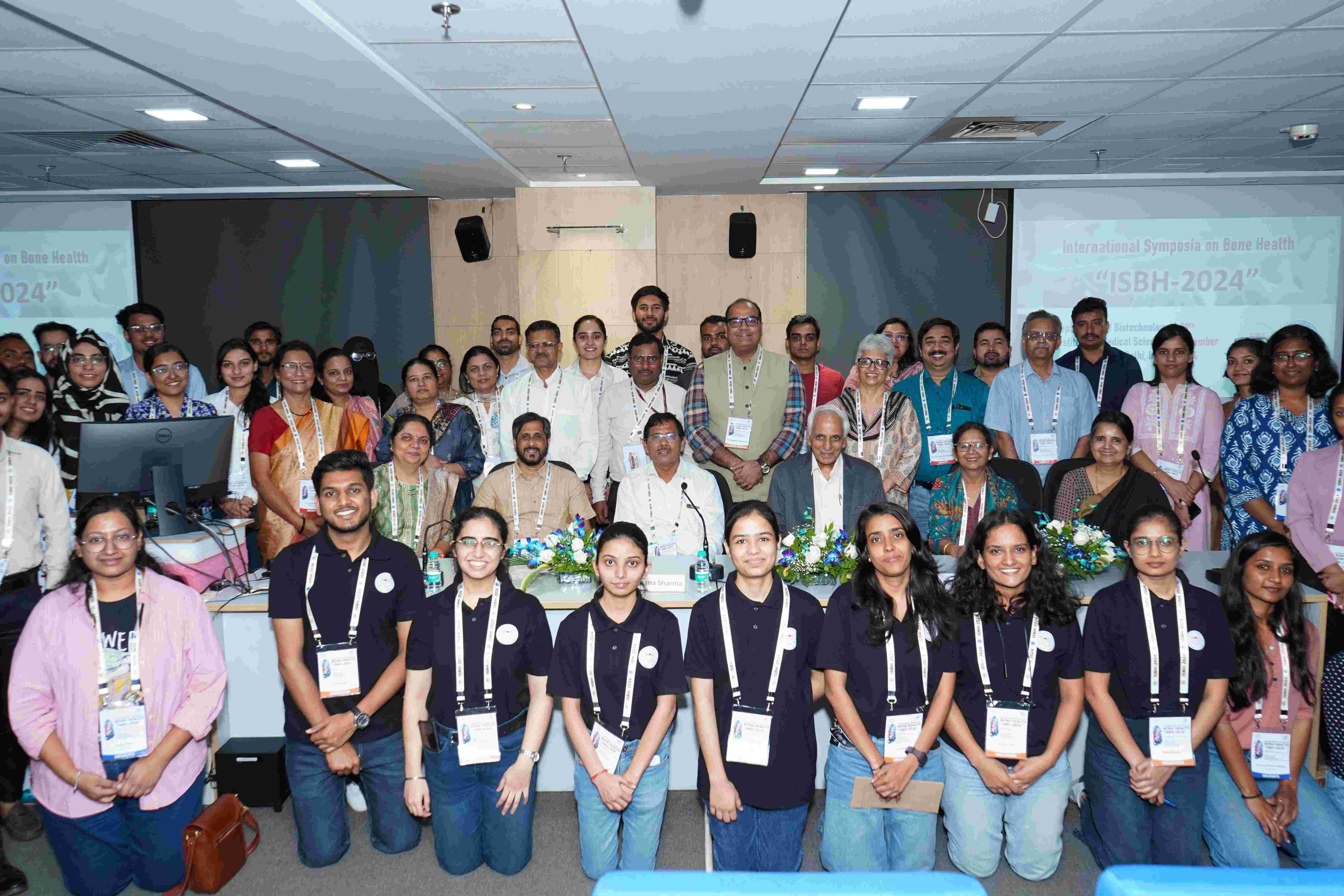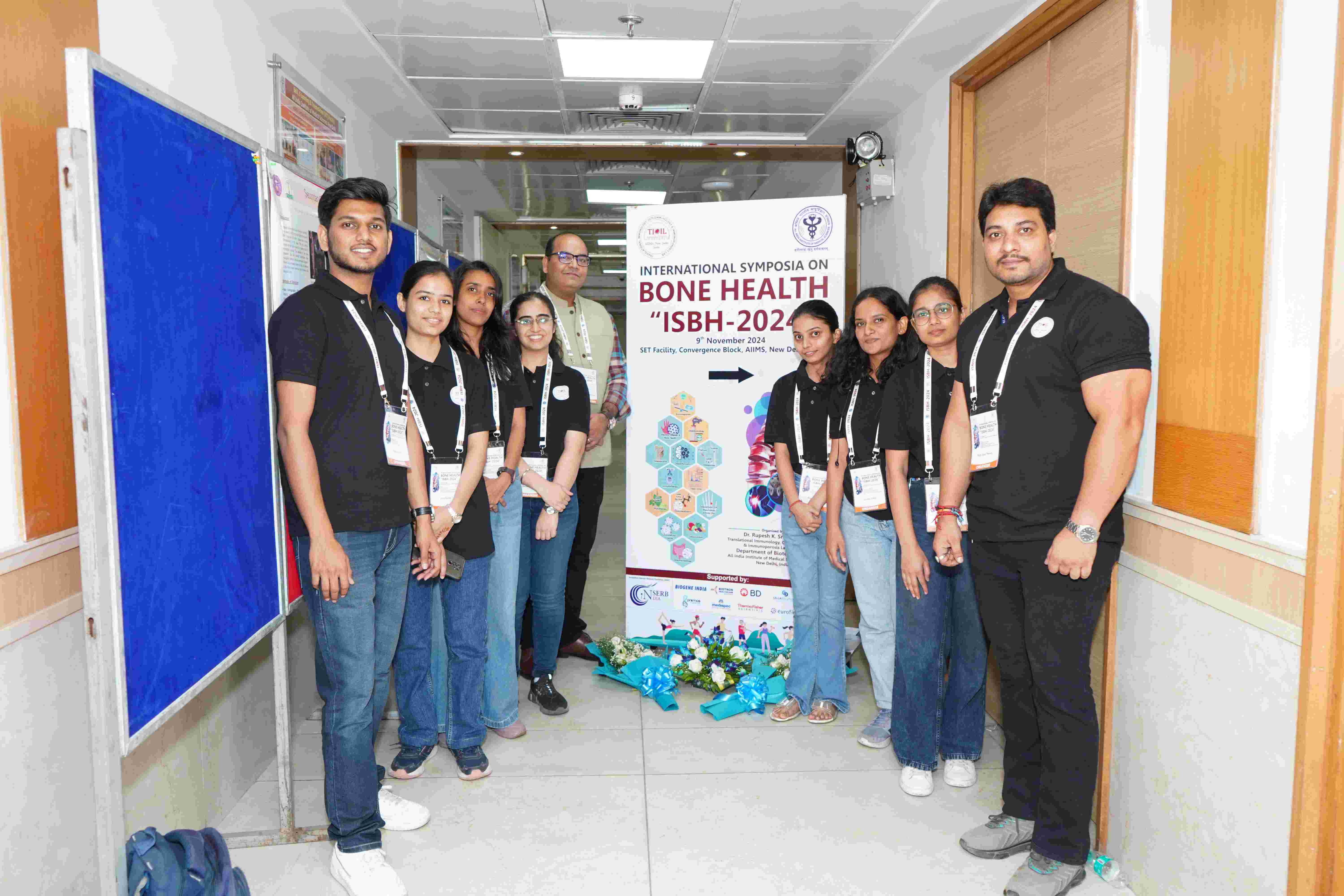 The International Symposia on Bone Health (ISBH-2024), organized by the Translational Immunology, Osteoimmunology & Immunoporosis Lab (TIOIL) at the Department of Biotechnology, All India Institute of Medical Sciences (AIIMS), New Delhi, took place on November 9, 2024, at the SET facility. The event successfully hosted over 150 participants from 16 esteemed international and national institutions. The symposium assembled a distinguished panel of experts to discuss a wide array of topics pertinent to bone health, including Primary and Secondary Osteoporosis, Immunoporosis, Osteoimmunology, Osteomicrobiology, Osteometabolism, Osteonutrition, Immunotherapy, Osteotoxicology, the relationship between Infectious Disease and Bone Health, Osteo-omics, Bone Metastasis, and Osteosarcoma. Inaugurated by Prof. Nikhil Tandon, Head, Department of Endocrinology and Metabolism, AIIMS, New Delhi, the event featured the release of the Abstract Book and the "ISBH-Compendium on Bone Health 2024" by Dr. Taruna Madan, Scientist G & Head, Developmental Research Division from ICMR, New Delhi. This compendium, containing executive summaries and policy recommendations, aims to inform future health decisions in India. Keynote presentations by Prof. Gérard Karsenty from Columbia University, NYC, USA, and Prof. Edward Czerwinski from Jagiellonian University, Poland, highlighted the novel research on Osteocalcin and advancements in osteoporosis treatment, respectively. Plenary talks from distinguished Indian bone biologists showcased innovative developments in diagnostic and therapeutic strategies for bone health. The symposium included an engaging poster session where post-doctoral fellows, Ph.D. scholars, and students presented diverse findings. The young researchers were endowed with ISBH-Young Scientist Travel grants and appreciation awards for outstanding poster presentations. ISBH-2024 facilitated dynamic interactions among clinicians, early-career researchers, and established experts, fostering collaboration and innovative approaches in the bone health domain.