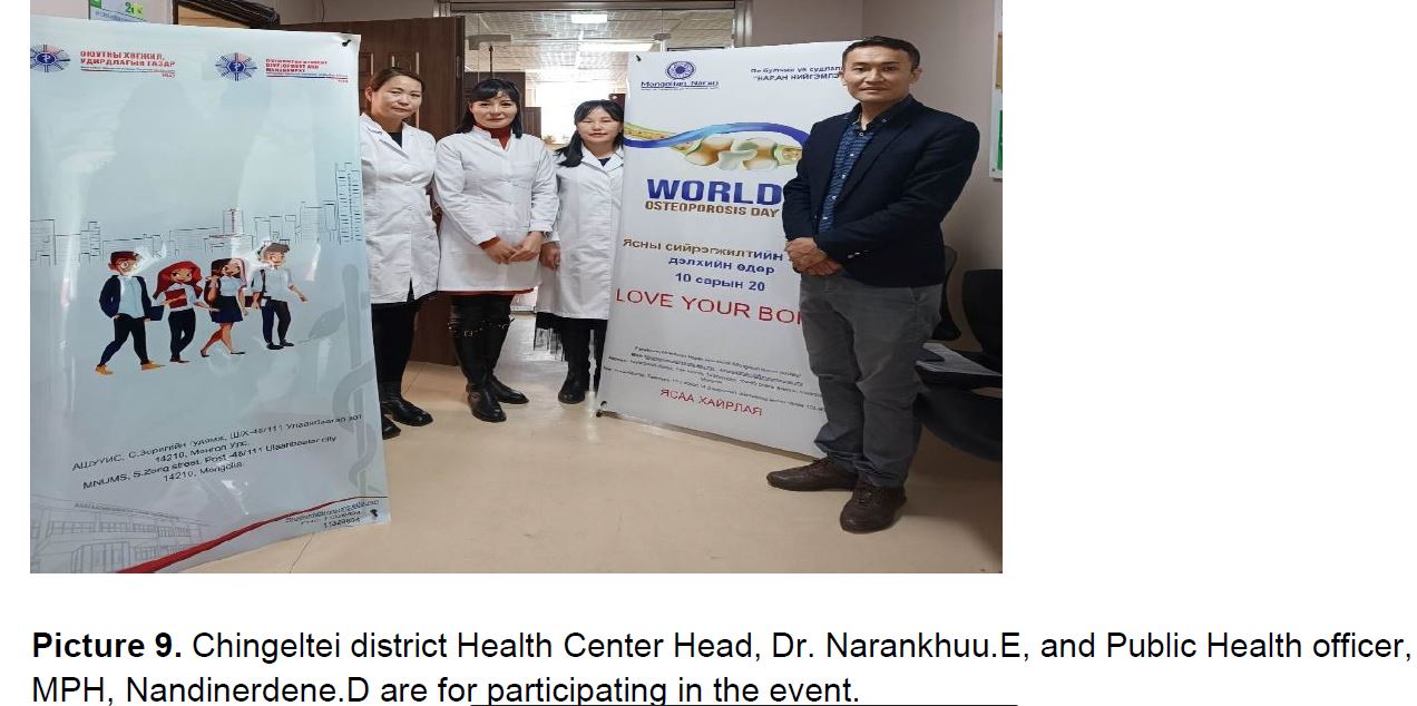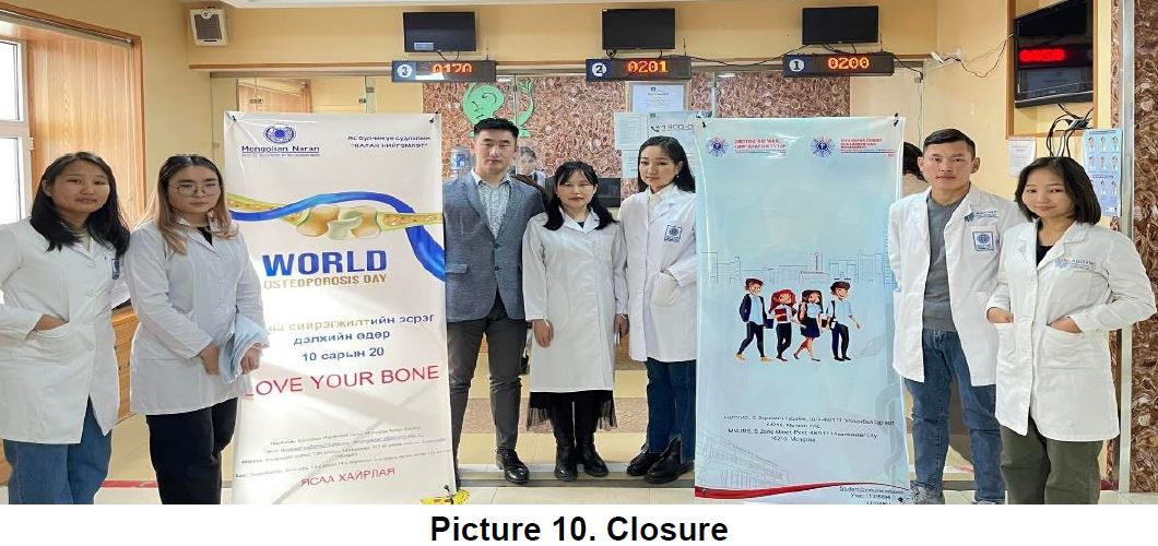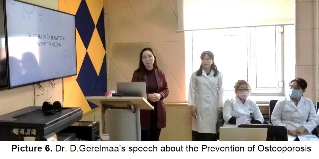 - 09:35-09:40: Secretary of Naran Society of Osteoarthritis and Musculoskeletal Health Dr. Bolyskhan. B, MD, Master course student, Enkh-Ireedui.G lectured on the subject of Osteoporosis leading to Bone fracture