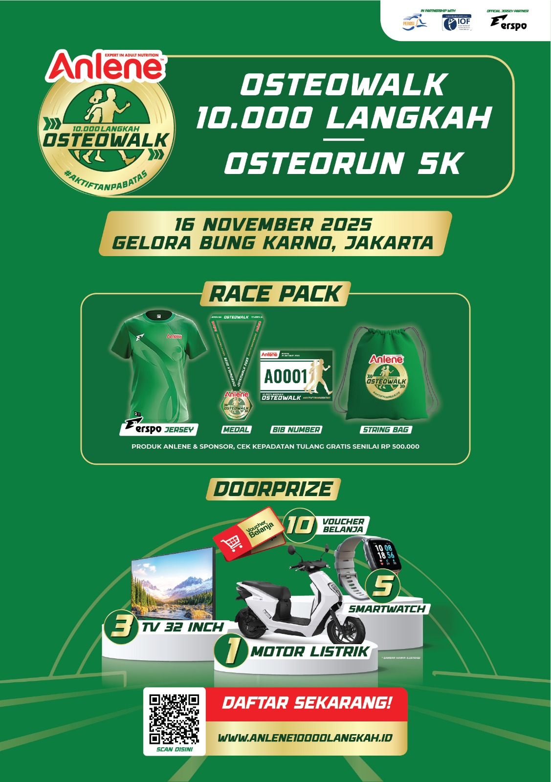 The Osteowalk and Osteorun events also featured a lively wellness festival, complete with mass warm-up exercises, music, and educational booths. Participants received exclusive race packs containing a green Osteowalk jersey, bib number, medal, and drawstring bag—symbolizing their commitment to staying #AktifTanpaBatas (“Active Without Limits”). The joyful and inclusive atmosphere demonstrated how awareness campaigns can unite people of all backgrounds in a shared mission to fight osteoporosis through movement and education.