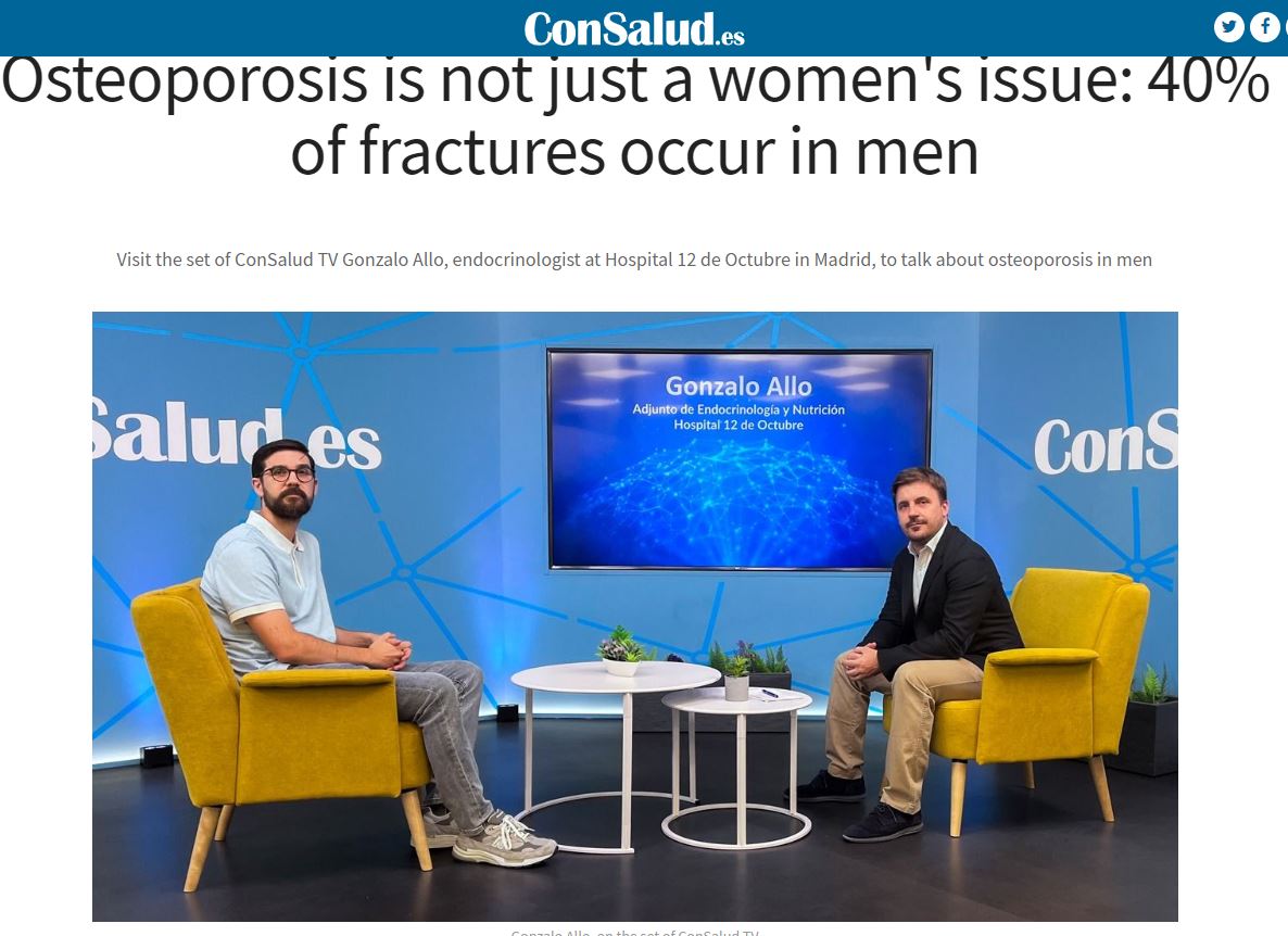 ConSalud TV, influential daily news in the health field, featured an interview with Dr Gonzalo Allo, endocrinologist at Hospital to talk about osteoporosis in men.