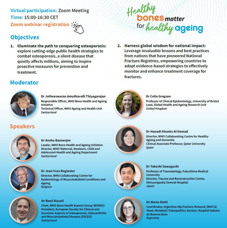 We invite you to attend the World Health Organization Webinar on Bone Health and Osteoporosis, taking place on October 25th, 2024 at 15:00 CET.