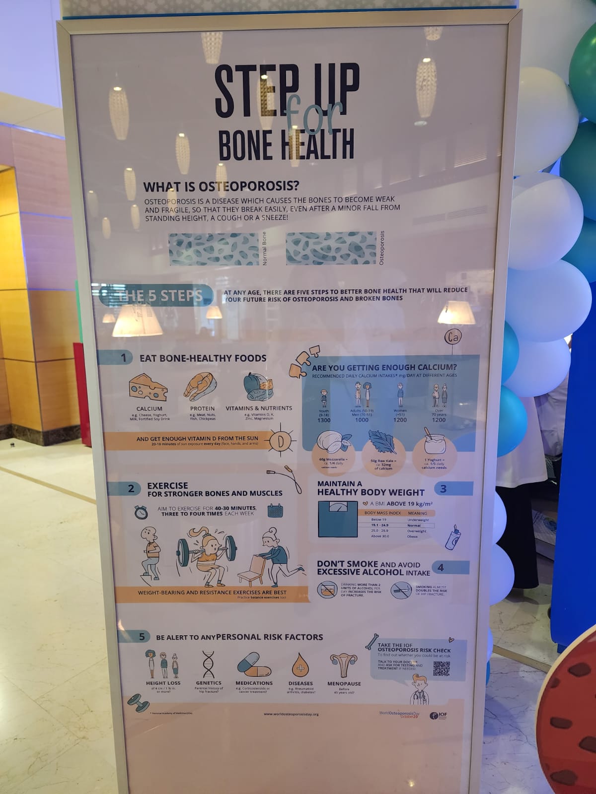 Rheumatology division at Hamad Medical Corporation organized a campaign on October 20 that included public awareness booth at Hamad General Hospital. This year in addition to educating the public about osteoporosis, the campaign stressed on exercise to strengthen bones and muscles, as well as eating bone-healthy food. During the same week, interviews were given to radio, TV and newspapers by experts in the field. Social media campaign was also held.
