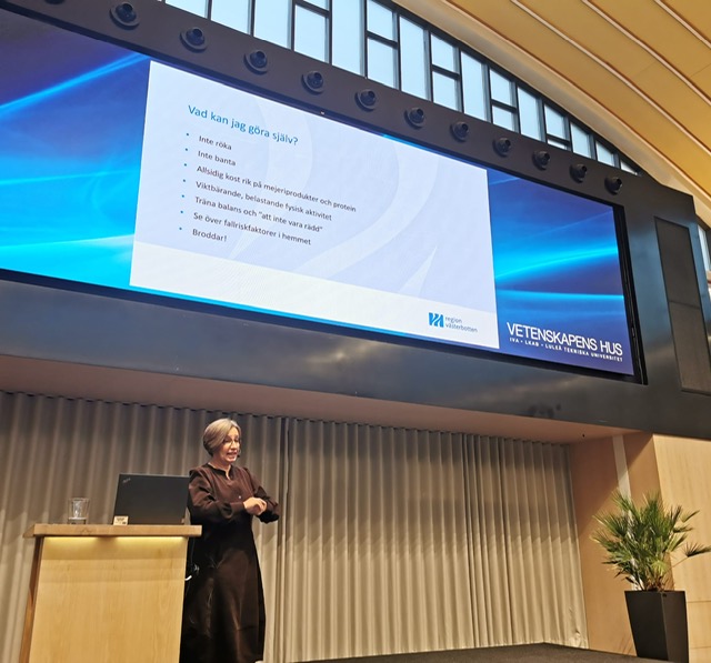 Under the title Bone health with the right drug treatment - for whom, what and when?, senior physician in internal medicine Anna Ramnemark from Umeå lectured. She discussed osteoporosis and gave insight into the benefits of the different drugs and how one should relate to the "package insert". She answered many medical questions from the audience.
