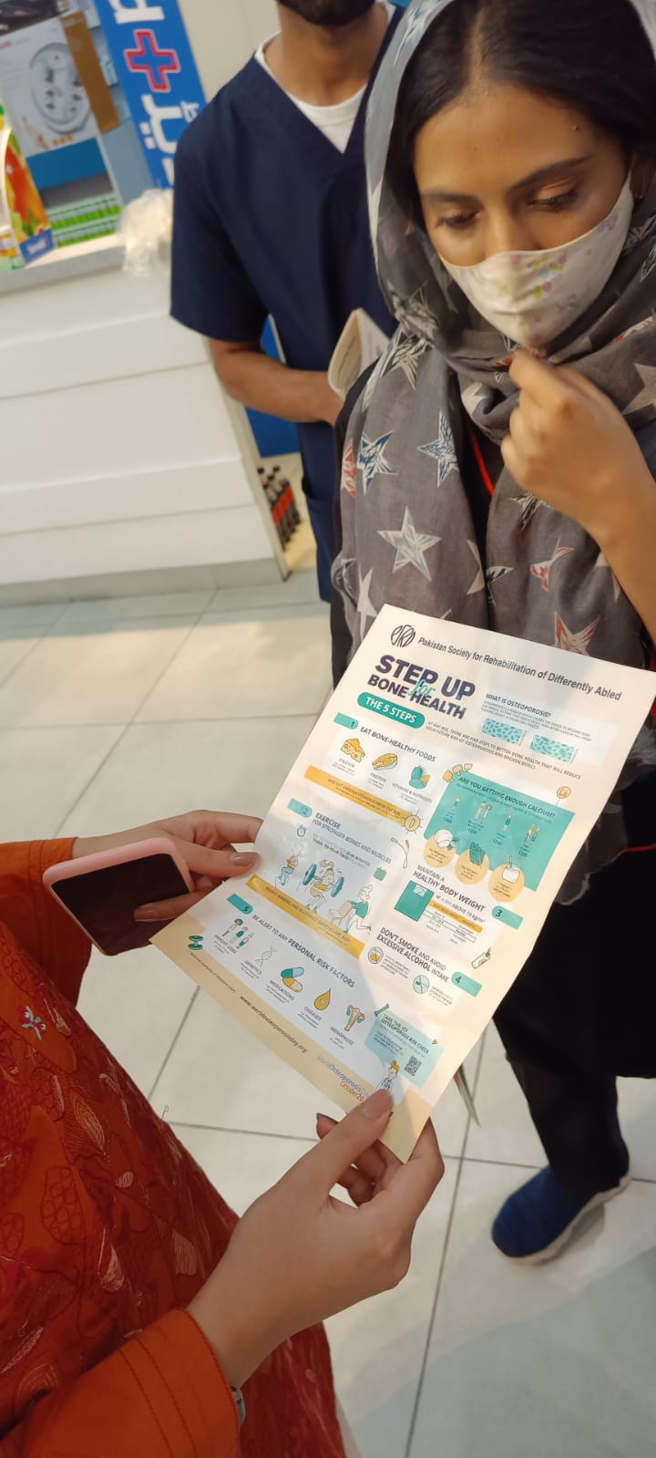 The campaign was executed at PSRD's premises and all the patients and employees were given awareness sessions and phamplets with information on how to maintain and keep a good diet for strong bones and healthy life.