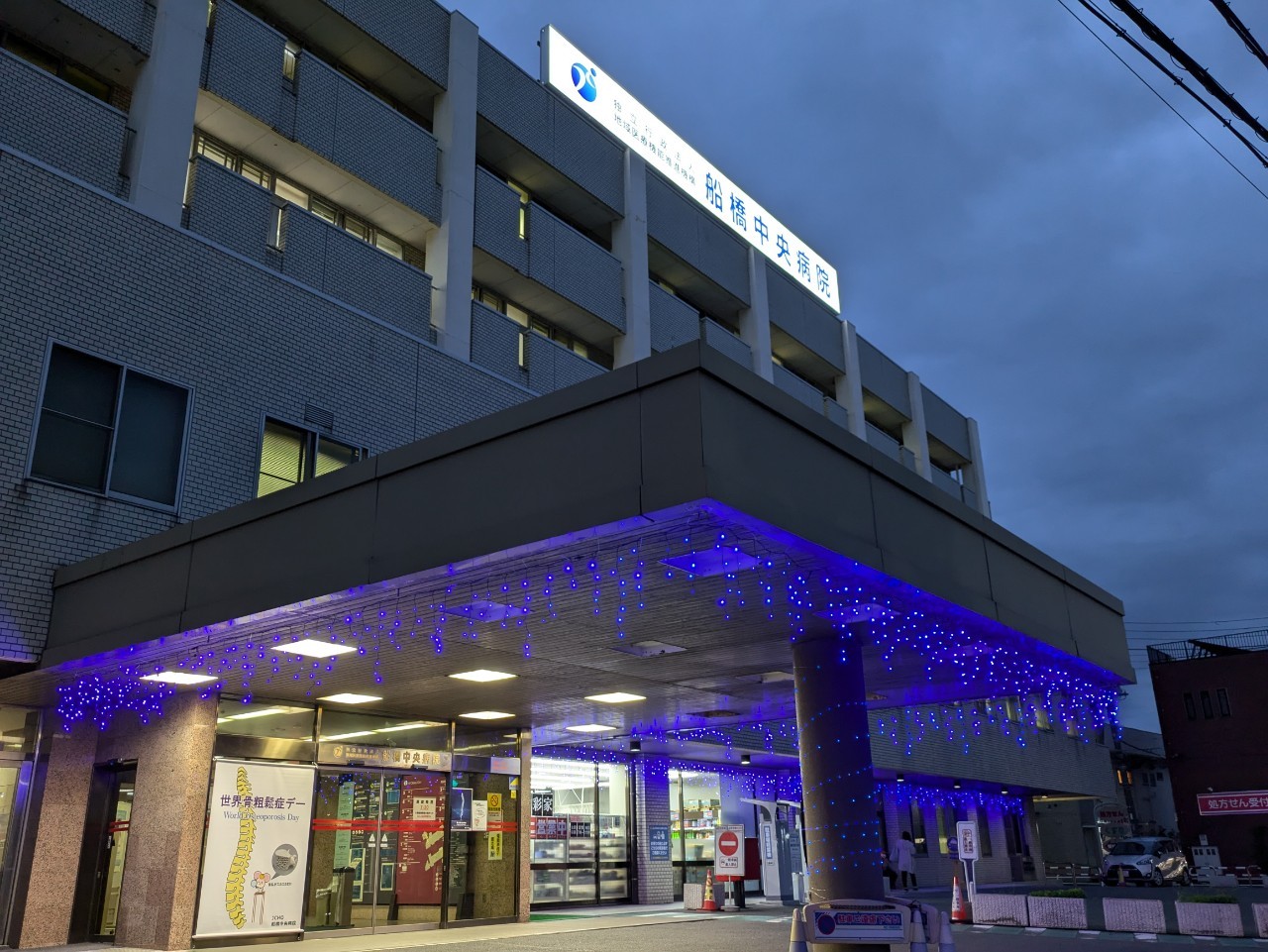 From October 15- 25, 2024 there was a 'Blue light-up' campaign at Funabashi Central Hospital, 6-13-10 kaijin Funabashi Event info: Tuesday, October 15, 2024 Funabashi , Japan 6-13-10 Organized by: JCHO Funabashi Central Hospital Blue Light-Up Campaign to mark World Osteoporosis Day Share event