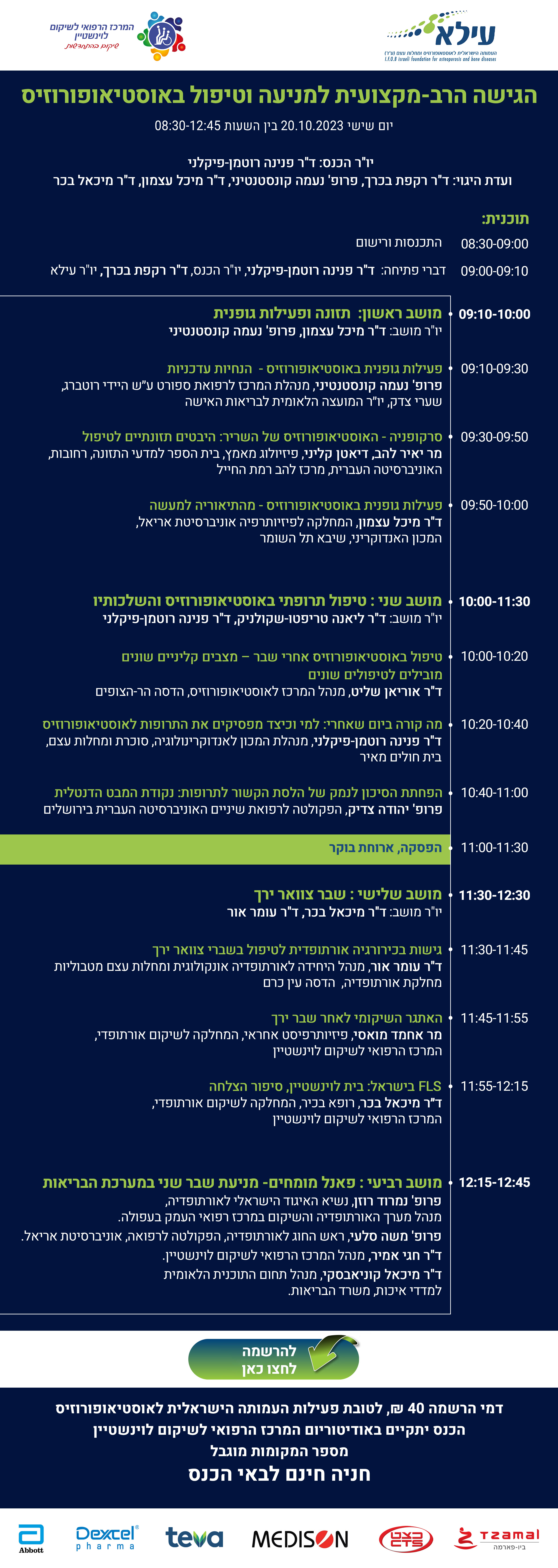 Joining the event will be representatives from the Ministry of Health and various HMOs to discuss the enforcement of post-fracture treatment.