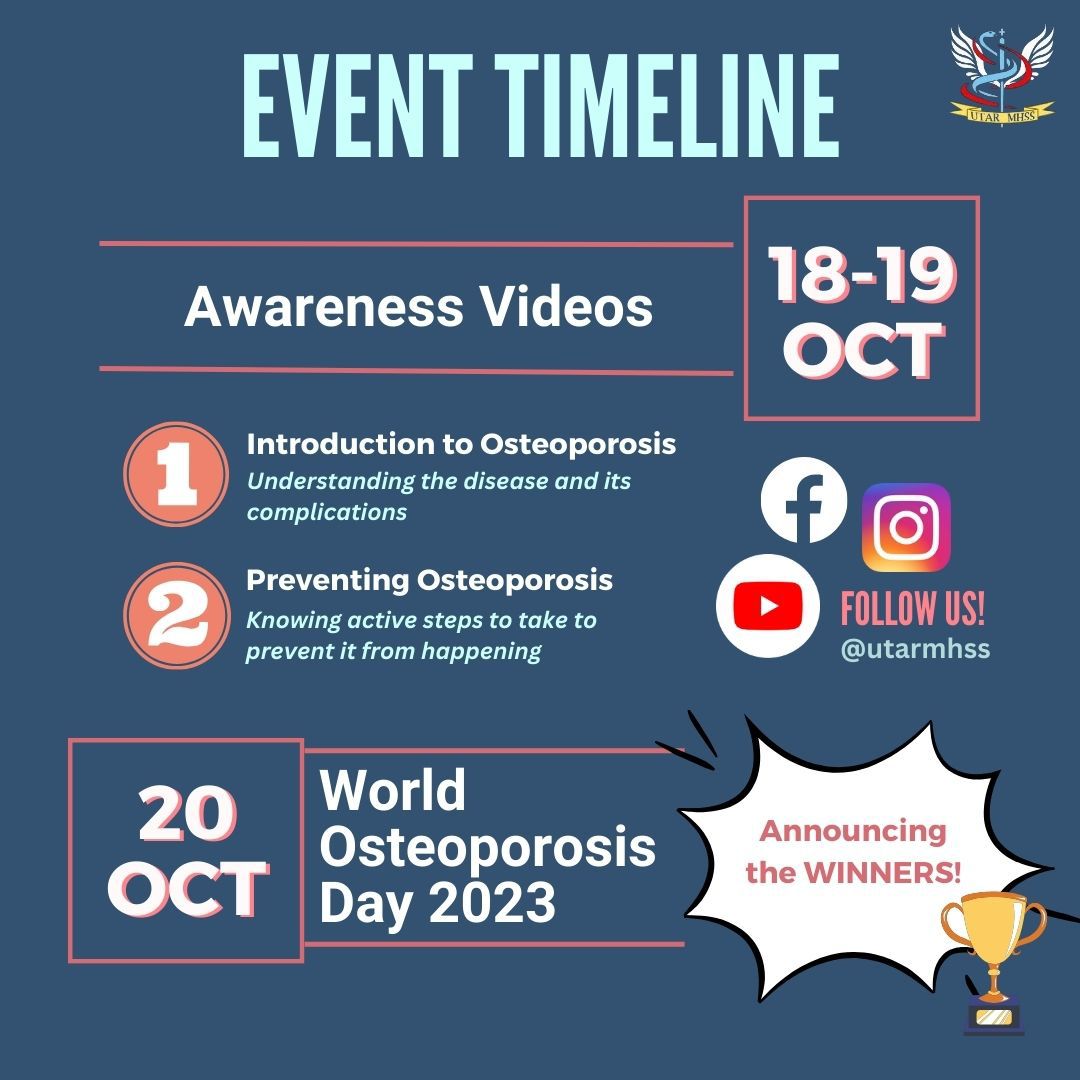 The students from Universiti Tunku Abdul Rahman's Medical and Health Sciences Society will be organising a 2023 World Osteoporosis Day online awareness campaign from 5th-20th of October 2023.