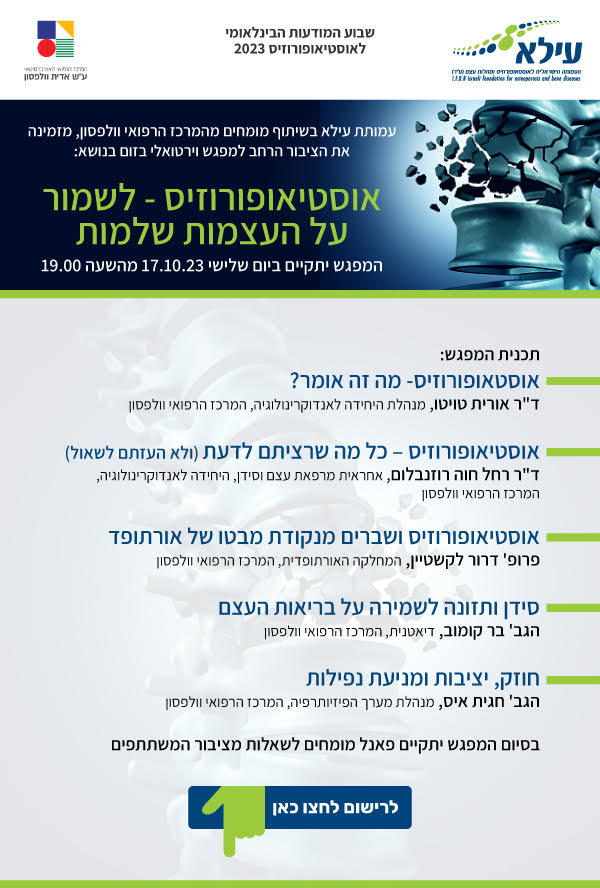 The webinar is being developed in collaboration with the Endocrinology Unit in Wolfson Medical Centre and will include pre-recorded short lectures by members of the endocrinology and orthopedic departments, a dietician, and a physiotherapist.