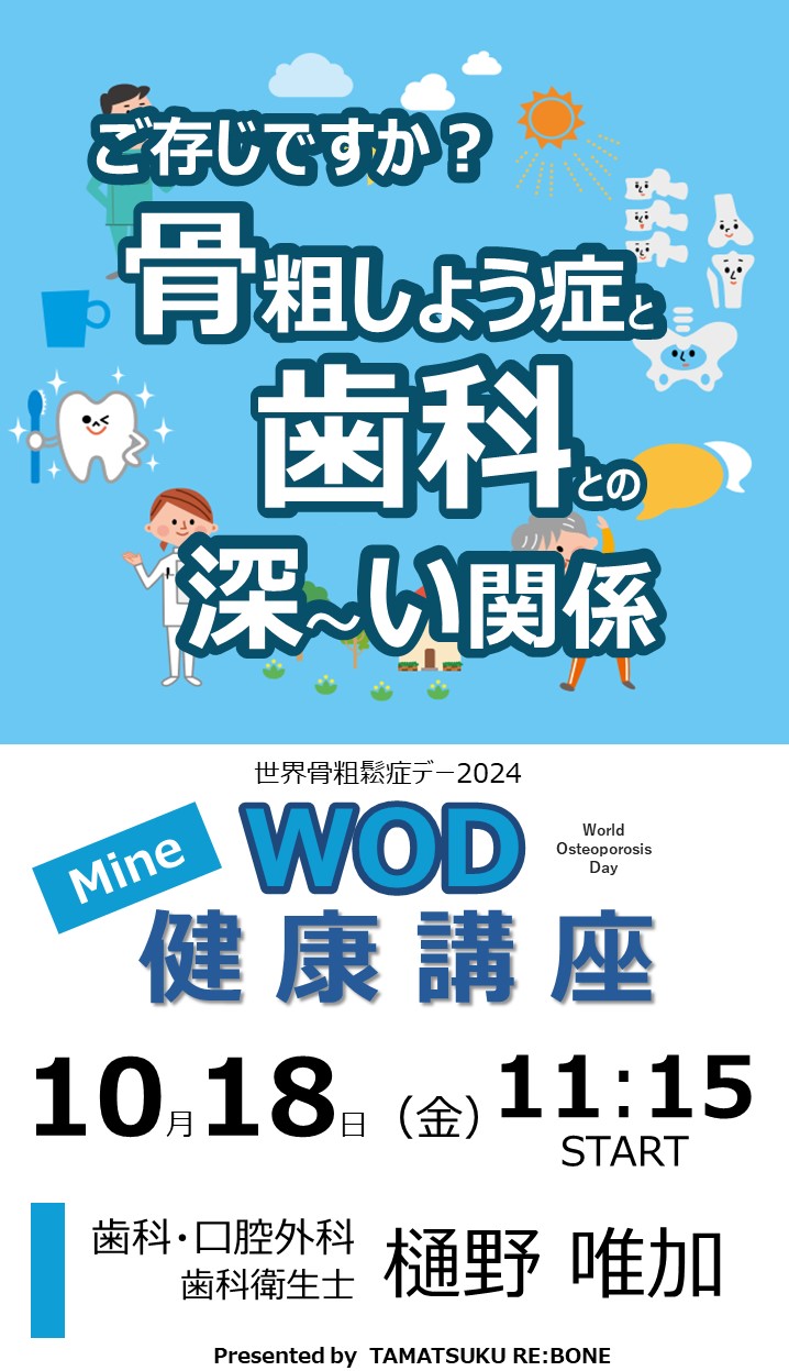 Public Lecture on Osteoporosis Event info: Friday, October 18, 2024 to Friday, October 18, 2024 Matsue , Japan JCHO TAMATSUKURI HOSPITAL Organized by: JCHO TAMATSUKURI HOSPITAL World Osteoporosis Day Campaign Share event