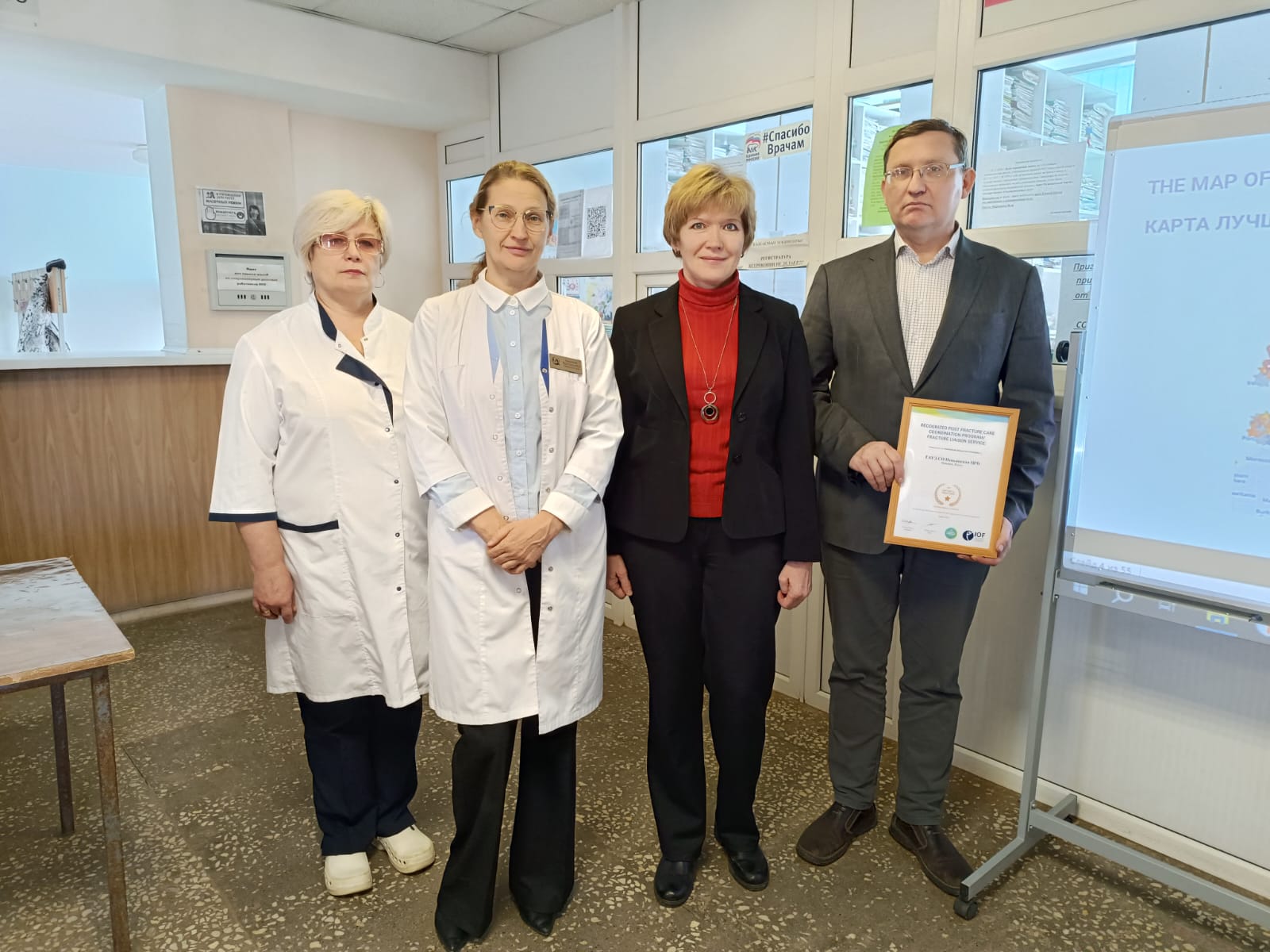 A significant highlight was the presence of Lyudmila Evstigneeva, the chief freelance rheumatologist of the Ministry of Health of the Sverdlovsk region. She ceremoniously presented DenisVolkov, the chief physician of Nevyansk Central Regional Hospital, with a certificate of compliance with the bronze standard from the International Osteoporosis Foundation (IOF). This certificate confirms the high level of work by the Nevyansk Fracture Prevention Service, which became the first in the Sverdlovsk region to receive such an award. Denis Volkov acknowledged the achievements of the prevention team, emphasizing their high professionalism and dedication.
